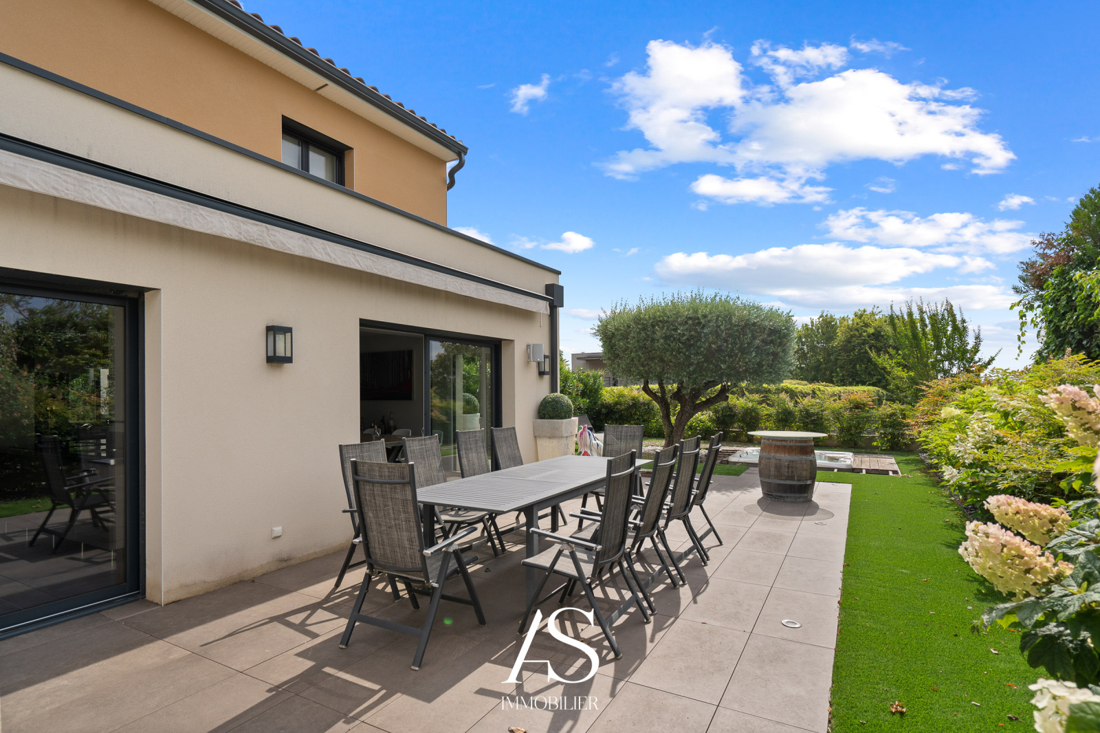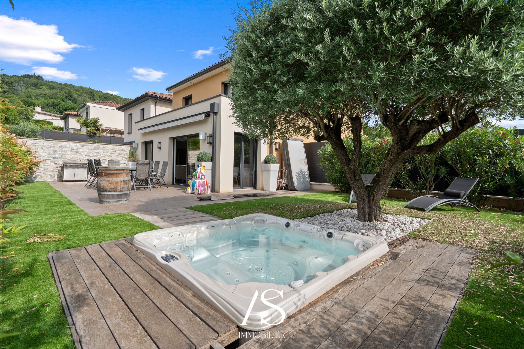 Sur les hauteurs de Collonges au Mont D'Or limite St Cyr, maison contemporaine de 2017 de 120m2 sur un terrain plat avec jacuzzi enterré ( poss piscine) et paysagé de 300m2, grande terrasse ombragée.